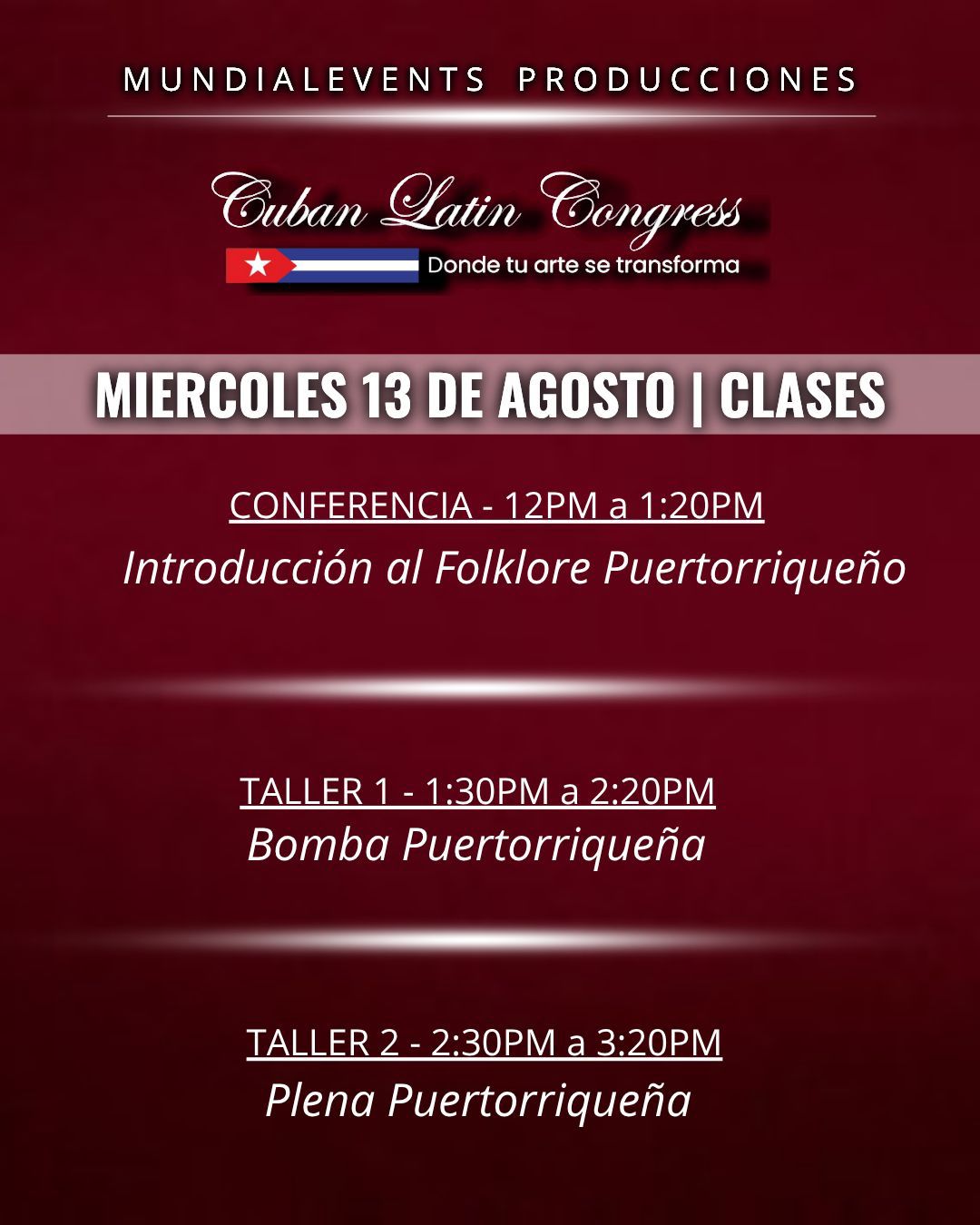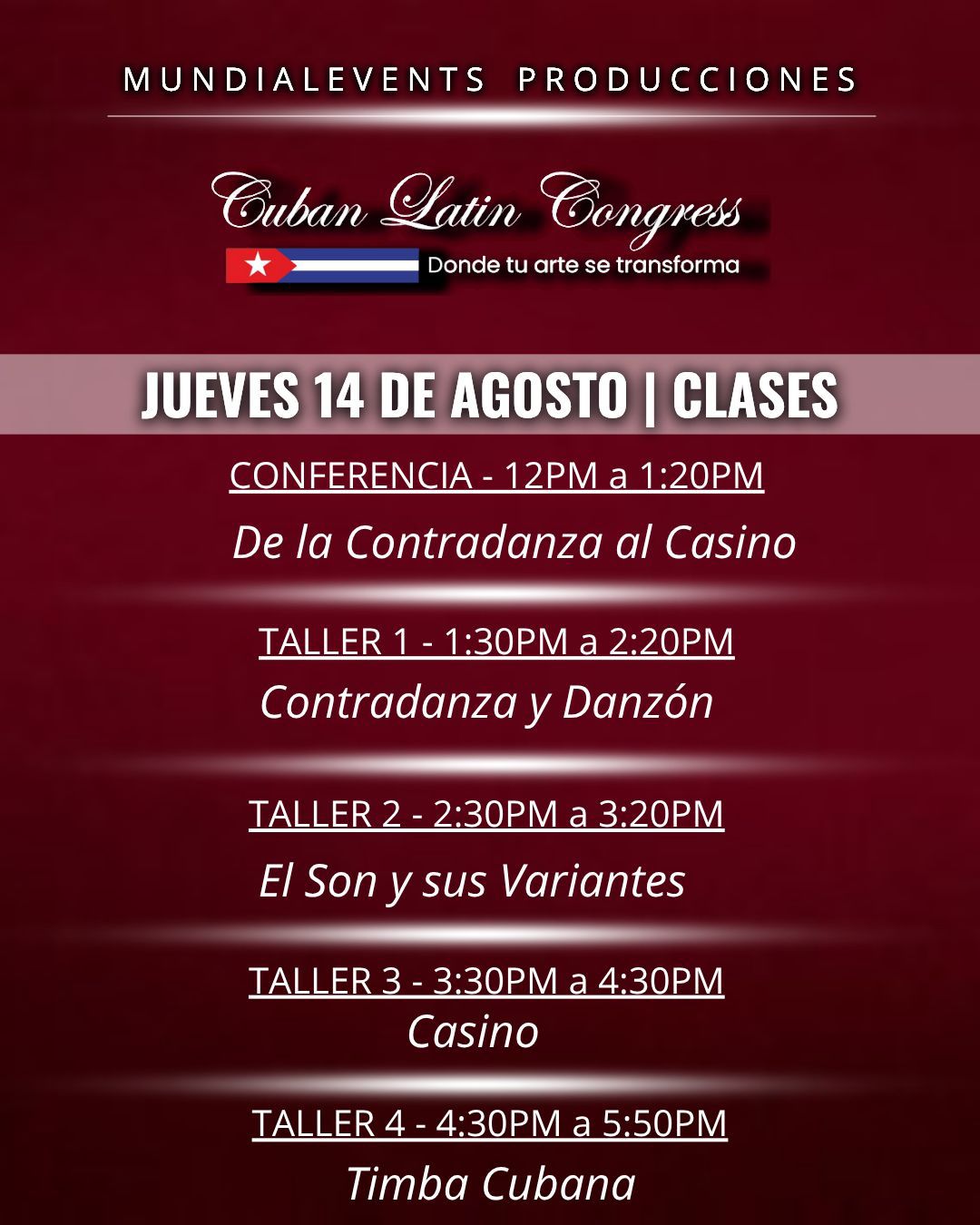 Con el programa de clases magistrales del Cuban Latin Congress, estamos emocionados de revolucionar los conceptos de aprendizaje al incluir la introducción a las artes danzarias populares, tradicionales y folklóricas. Este año, se llevará a cabo del 14 al 17 de agosto de 2025 en la vibrante ciudad de La Habana, Cuba. Los participantes tendrán la oportunidad de sumergirse en una experiencia única, explorando diversos estilos y técnicas de danza. Al finalizar los talleres, se entregarán certificados físicos para reconocer el esfuerzo y el compromiso de cada asistente.